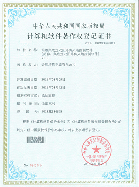 • 培恩集成灶雙回路防火墻控制軟件